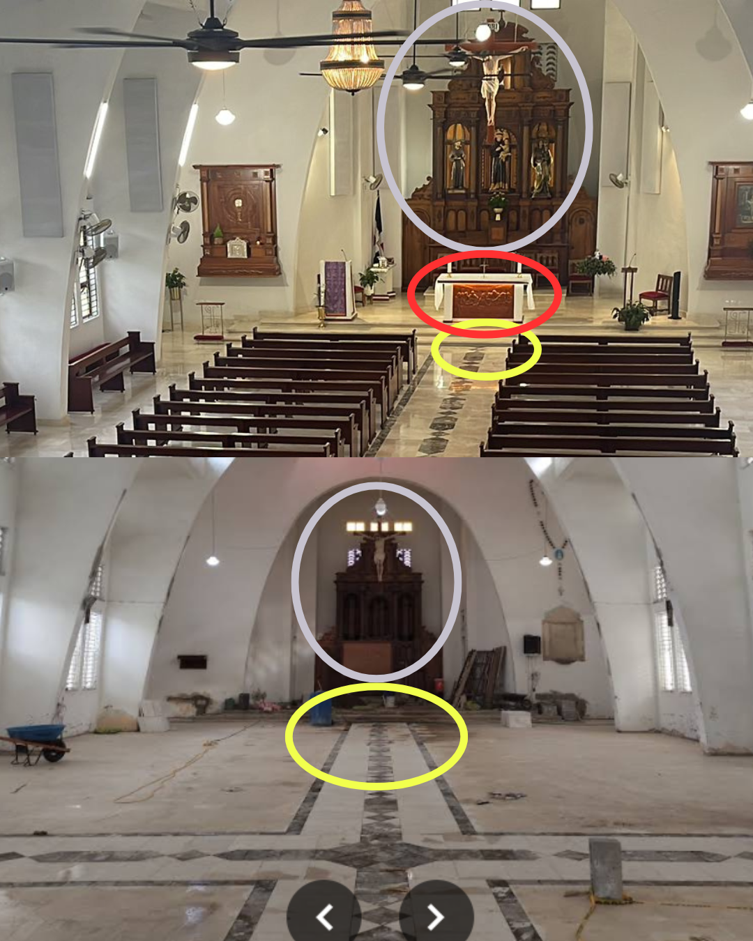 - En haut : photo du Facebook de l’église. En bas : Photo de mars 2021 publiée sur Google Maps.