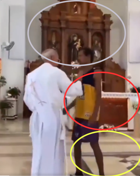 Concernant la deuxième partie de la vidéo, le père Lebien Meril poursuit : « À la fin de la célébration, sur l’ esplanade de l’église, une personne qui enregistrait une vidéo de sa fille recevant le baptême estimait que le fou, en pénétrant dans l’église, perturbait son enregistrement et décida de l’agresser physiquement. »