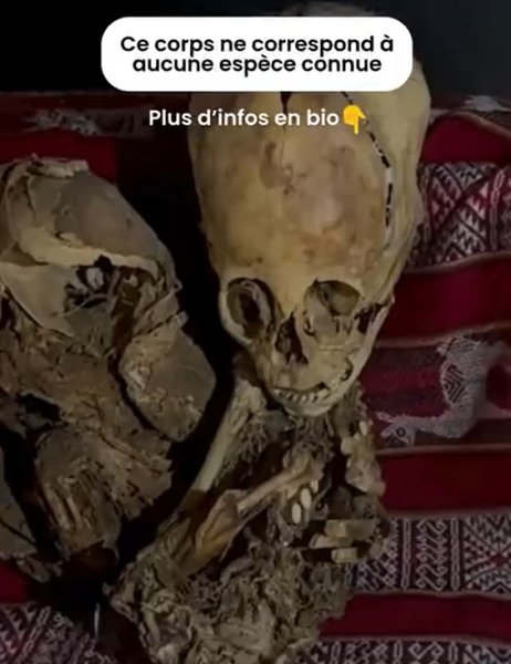 Un utilisateur de Facebook affirme, par exemple, qu’une momie « vieille de 1000 ans a été découverte, dont l’analyse ADN a révélé qu’elle est composée à 70 % de gènes non humains ». De quoi, selon cet internaute, « soulever des questions sur l’origine extraterrestre de la créature dont les restes ont été trouvés ».
