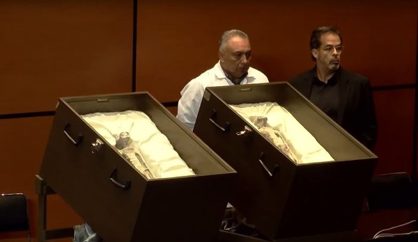 Au beau milieu du palais San Lanzàro de Mexico, Jaime Flota révèle deux spécimens soi-disant momifiés avec des yeux obliques en amande et des mains à trois doigts. Le journaliste soutient face aux députés qu’il s’agit de momies extraterrestres vieilles de 1 000 ans, prétendument découvertes au Pérou, près des lignes Nazca, du nom de ces grandes figures tracées dans le sol par des peuples antérieurs aux Incas. Diffusées dans le monde entier, les images de ces corps alimentent depuis de nombreuses spéculations sur les réseaux sociaux.