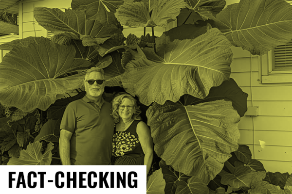 Un petit couple souriant se tient devant une plante luxuriante, deux fois plus grande qu’eux. Outre la taille gigantesque des feuilles, leur couleur — un violet pétant — est étonnante de vivacité. Et, on aurait raison d’être étonné, car cette photo, partagée des milliers de fois sur Facebook, a été générée par une intelligence artificielle : ni cette plante, ni même ces personnes n’existent.