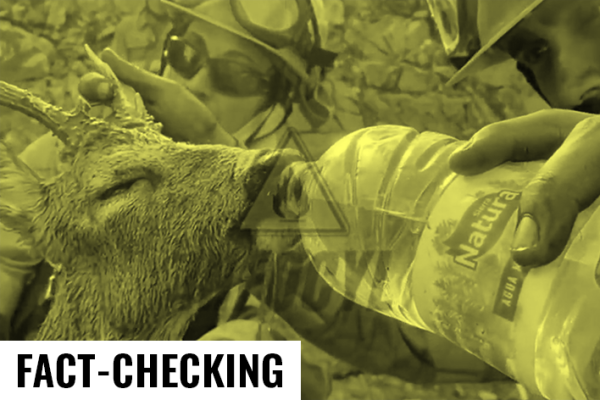 Sur ces images, l’animal, visiblement affaibli, est entouré d’une équipe de pompiers. L’un d’entre eux lui donne à boire avec une bouteille en plastique. « Ces pompiers ont passé la journée à combattre les feux en Espagne quand ils ont trouvé un chevreuil dans la forêt », explique un internaute.