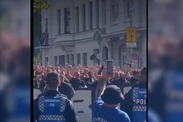 Une vidéo montrant des supporters de football allemands en août 2025 a été détournée pour faire croire qu’il s’agit de manifestants contre l’immigration.