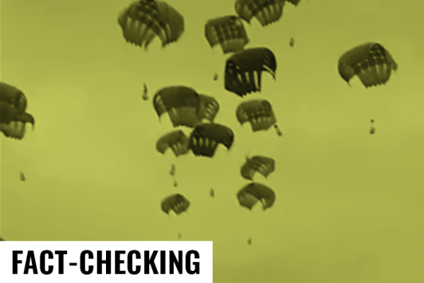 Si la provenance de l’aide humanitaire sur cette vidéo n’est pas clairement identifiée, elle ne peut en aucun cas correspondre à un supposé largage récent de la Chine, comme de nombreuses publications l’affirment en mai 2025.