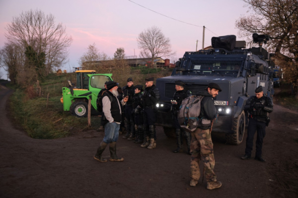 Malgré des tirs sporadiques de grenades lacrymogènes, la situation aux abords de la ferme retransmise par Tocsin est globalement calme : agriculteurs et gendarmes se font face, ces derniers ayant visiblement réussi à franchir les barrages pour bloquer l’accès au site.