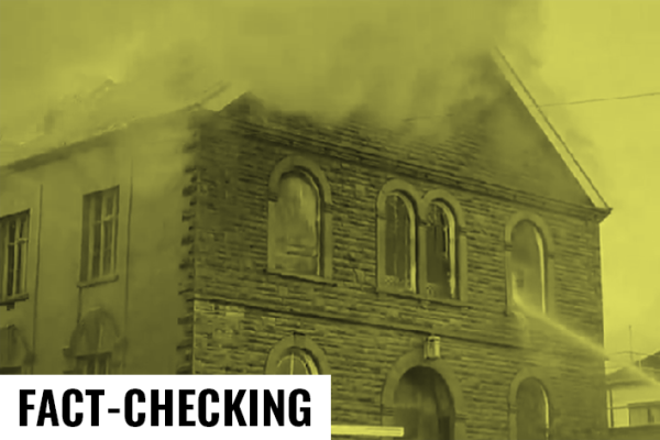Pour plusieurs internautes, l’incendie qui s’est déclaré dans une église galloise datant du XVIIIe siècle, le 24 avril 2025, serait l’œuvre de migrants pakistanais. Il s’agit d’une invention raciste.