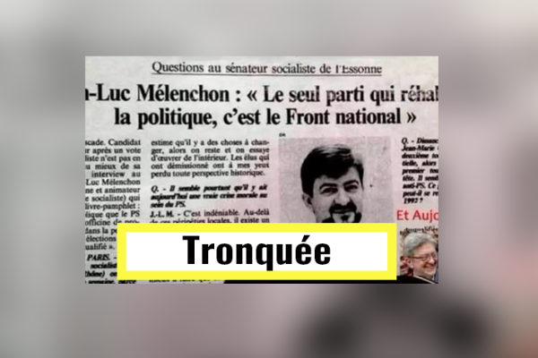 Une coupure issue d’un article du Quotidien de Paris publié en 1991 est régulièrement partagée sur les réseaux sociaux pour tenter d’affaiblir politiquement Jean-Luc Mélenchon. L’Insoumis aurait vanté les louanges du Front national, mais la citation est en réalité tronquée.