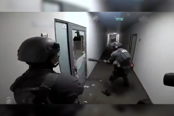 Une « usine à bots massive » démantelée par la police ? Des vidéos d’une vaste opération de police sont largement partagées sur les réseaux sociaux ces derniers jours. On y voit des hommes lourdement équipés de casques et gilets pare-balles défoncer une porte avant d’entrer dans une pièce remplie de matériels informatiques.