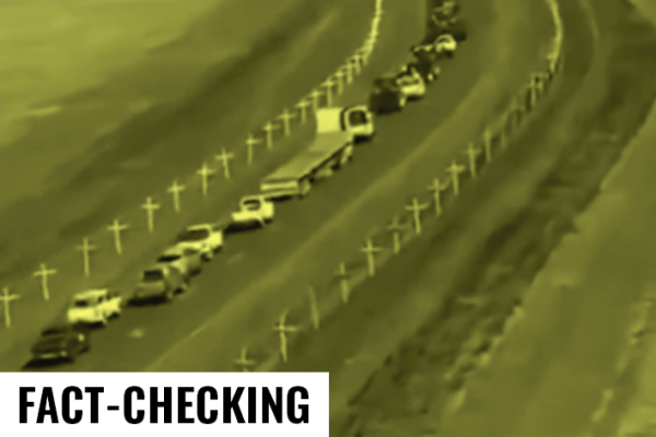Parmi ces « preuves », le président états-unien a montré cette vidéo dans laquelle on voit quelques centaines de voitures à la queue leu leu sur une route bordée de centaines de croix blanches.