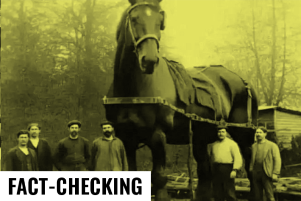 Une image partagée sur les réseaux sociaux montre un cheval gigantesque qui aurait vécu au XVIIIe siècle. L’animal a bien existé, mais la « photo » a été générée par une IA et exagère ses proportions.