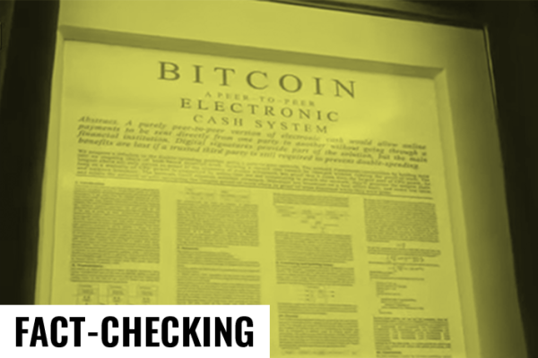 Sauf que la vidéo est… truquée. Les Surligneurs ont retrouvé les images originales. À la place du livre blanc du Bitcoin trône en réalité un exemplaire de la Déclaration d’indépendance des États-Unis.