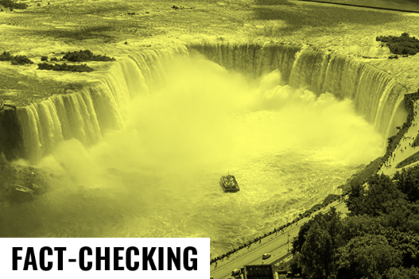 « Nous pouvons confirmer que cet événement n’a pas eu lieu, et que l’image dont vous parlez est très certainement altérée par l’IA ou un logiciel de retouche photo. Aucun événement ou coup de publicité de quelques natures que ce soit n’a été programmé ou planifié le 22 juin 2025. L’image est donc fausse et l’histoire qui l’accompagne a été créée dans le but d’induire les téléspectateurs en erreur. Rien de tout cela n’est vrai », clarifie auprès des Surligneurs l’agence gouvernementale de l’Ontario, Niagara Parks, en charge des parcs riverains et d’attractions le long de la rivière Niagara, du côté du Canada.