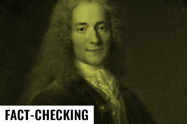 Citer ou s’appuyer sur les écrits d’un philosophe, qui plus est lorsqu’il s’agit d’une figure emblématique des Lumières comme Voltaire, peut donner du poids à un argument. Encore faut-il que ce texte ait bien été écrit ou prononcé par celui auquel il se réfère.