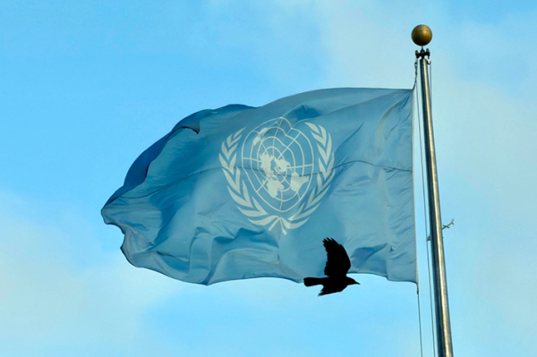 Le drapeau des Nations Unies au siège de l’ONU à New York, 18 décembre 2025 (Photo : Daniel SLIM / AFP)