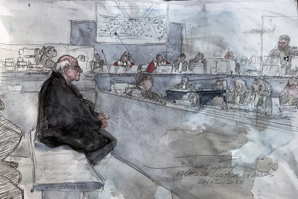 La salle d’audience est haute de plafond, et les bancs plutôt longs pour une « petite » cour criminelle départementale. Mais aujourd’hui, la salle principale du palais de justice de Vannes, qui ne peut accueillir que 80 personnes, paraît on ne peut plus exigüe alors que s’y pressent des dizaines de robes noires. À partir de 13h, ce 24 février, c’est ici que Joël Le Scouarnec comparaît pour viols sur mineur de 15 ans, viols aggravés, et agressions sexuelles aggravées, commis entre 1989 et 2014.