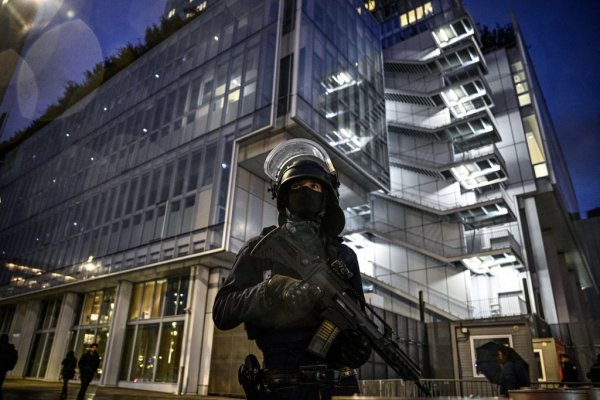 Un policier armé monte la garde dans l’attente d’une escorte policière transportant le trafiquant de drogue Mohamed Amra, à Paris, le 25 février 2025. (Photo Julien de Rosa / AFP)