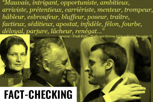 « Simone Veil à propos de François Bayrou : Mauvais, intriguant, opportuniste, ambitieux, arriviste, prétentieux, carriériste, menteur, trompeur », peut-on lire. Au total, ce ne sont pas moins de 16 adjectifs particulièrement virulents qu’aurait prononcés la première présidente du Parlement européen. « Traitre, félon, lâcheur, parjure, renégat », est-il écrit également.