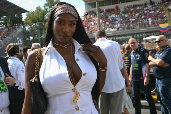 La chanteuse Aya Nakumara pose en marge du grand prix d'Italie de Formule 1, le 7 septembre 2025. Photo : Marco Bertorello / AFP